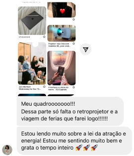 E pra esse quadro não virar só “um papel bonito na parede”, eu vou te ensinar a entregar seu quadro dos sonhos para Deus, pra você viver esse momento com presença e reverência. É como se você marcasse, de verdade: “a partir daqui eu paro de viver na confusão”. Você vai transformar o seu quadro em um marco de decisão e alinhamento com Deus — um lembrete diário do que você está sustentando com fé, não com desespero
